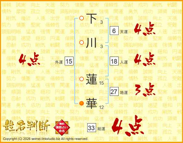 下川蓮華さんの総運は33画の4点!