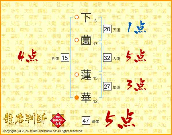 下薗蓮華さんの総運は47画の5点!