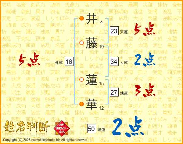 井(4画)藤(19画) 蓮(15画)華(12画)