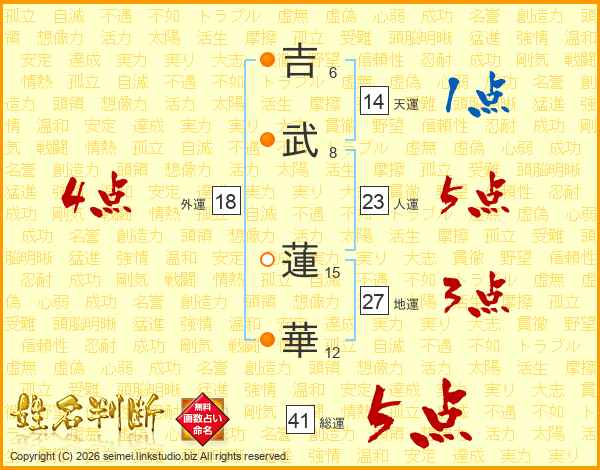 吉(6画)武(8画) 蓮(15画)華(12画)