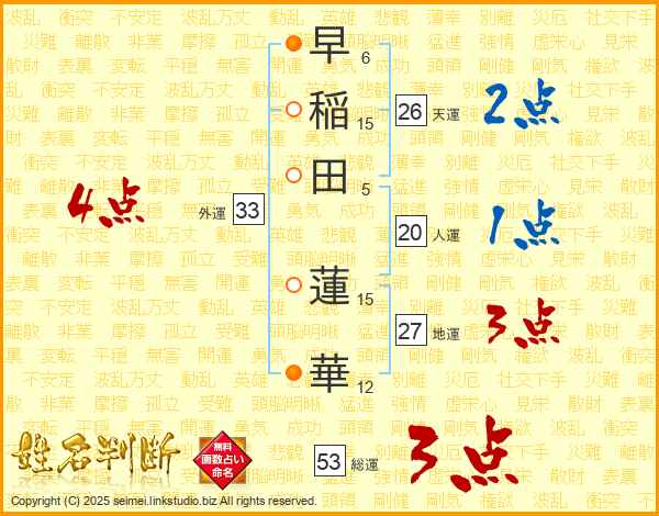 早稲田蓮華さんの天運は26画の2点!