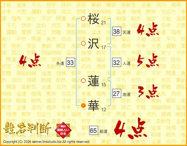 桜沢蓮華さんの総運は65画の4点!