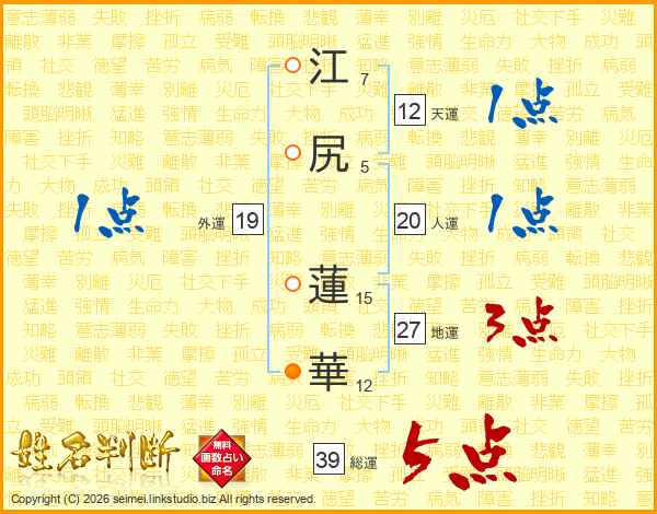 江尻蓮華さんの総運は39画の5点!