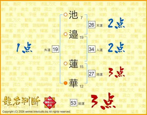 池(7画)邉(19画) 蓮(15画)華(12画)