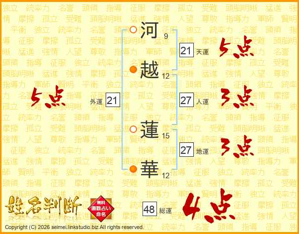 河越蓮華さんの総運は48画の4点!