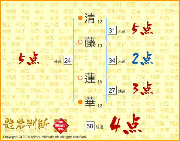 清藤蓮華さんの総運は58画の4点!