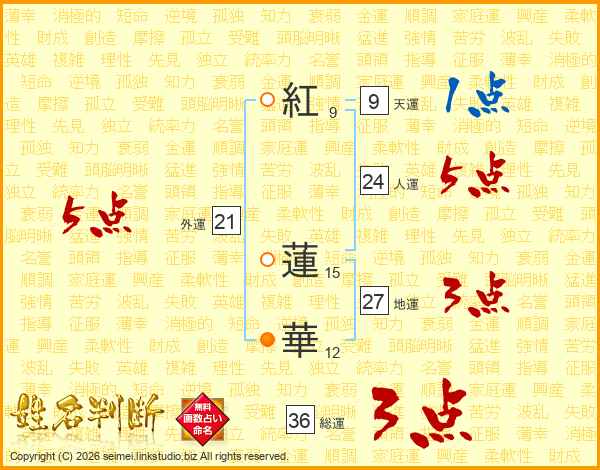 紅蓮華さんの外運は21画の5点!