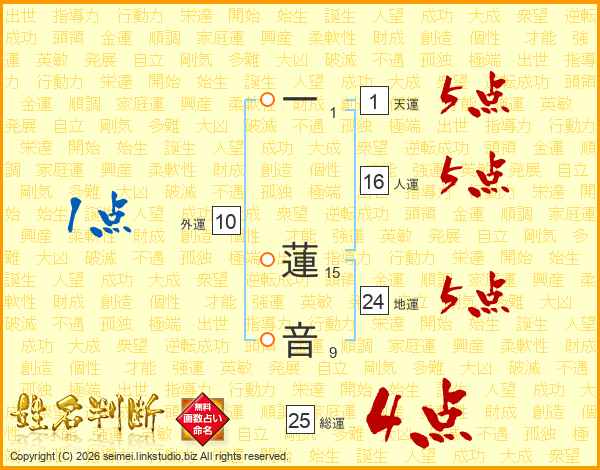 一蓮音さんの総運は25画の4点!