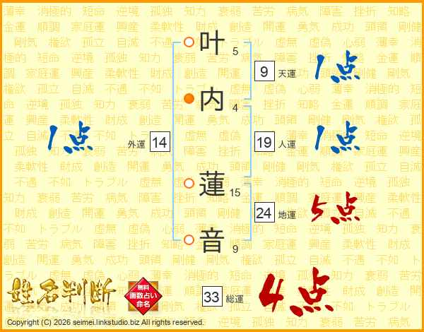 叶内蓮音さんの総運は33画の4点!