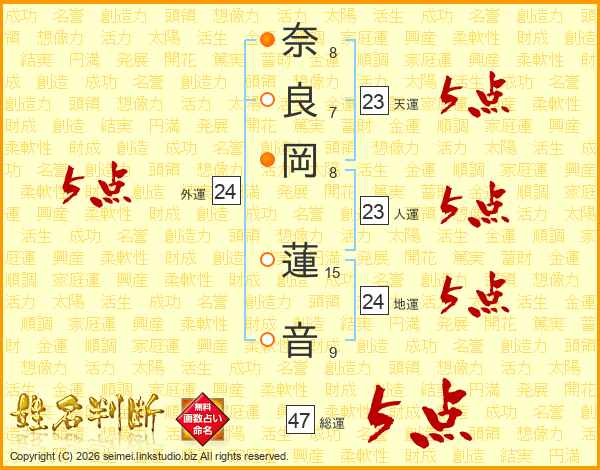 奈良岡蓮音さんの総運は47画の5点!