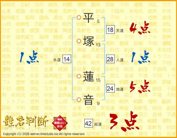 平塚蓮音さんの総運は42画の3点!