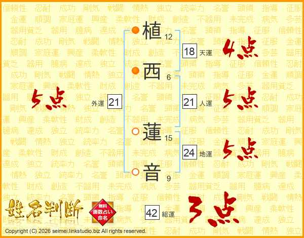 植西蓮音さんの外運は21画の5点!