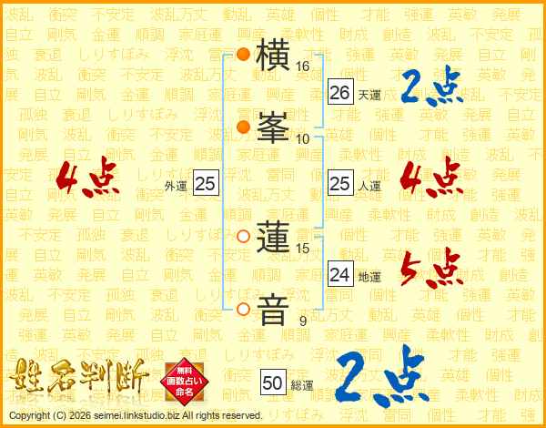 横峯蓮音さんの総運は50画の2点!