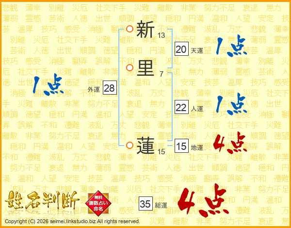 新里蓮さんの総運は35画の4点