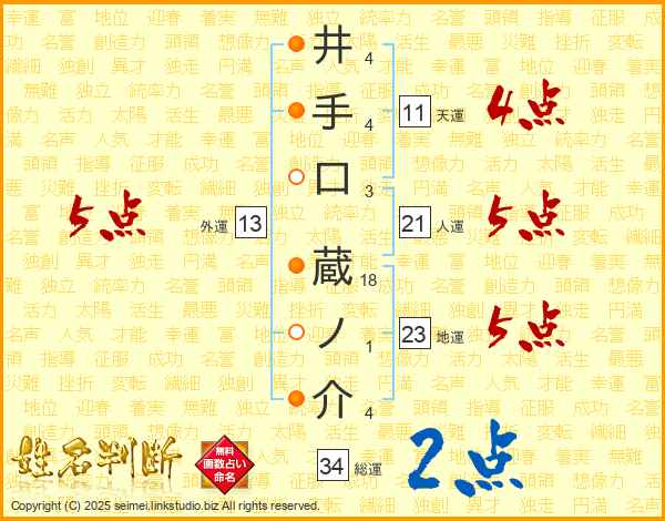 井(4画)手(4画)口(3画) 蔵(18画)ノ(1画)介(4画)