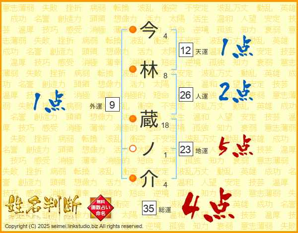 今林蔵ノ介さんの総運は35画の4点!