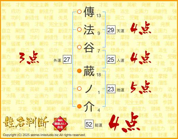傳法谷蔵ノ介さんの総運は52画の4点!