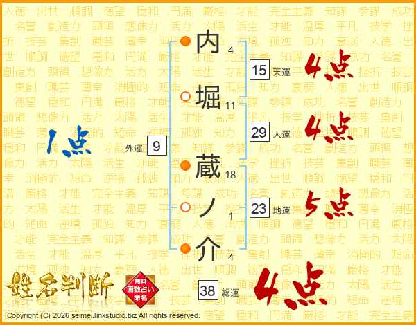 内(4画)堀(11画) 蔵(18画)ノ(1画)介(4画)