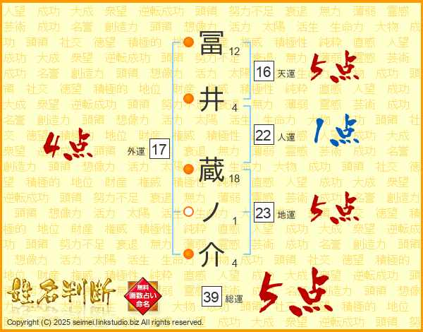 冨(12画)井(4画) 蔵(18画)ノ(1画)介(4画)