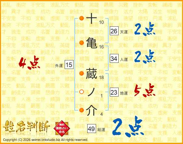 十亀蔵ノ介さんの総運は49画の2点!