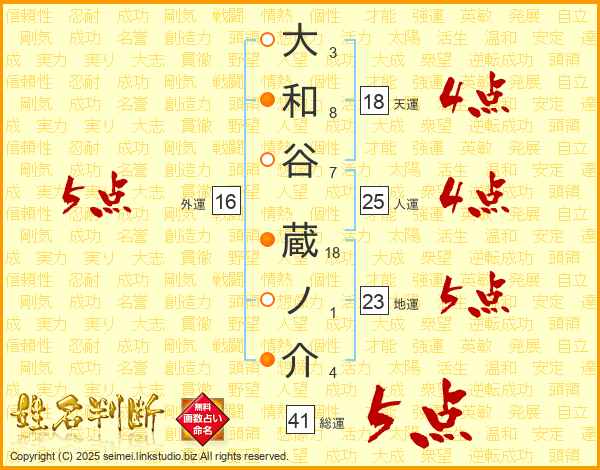 大(3画)和(8画)谷(7画) 蔵(18画)ノ(1画)介(4画)