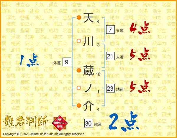 天川蔵ノ介さんの総運は30画の2点!