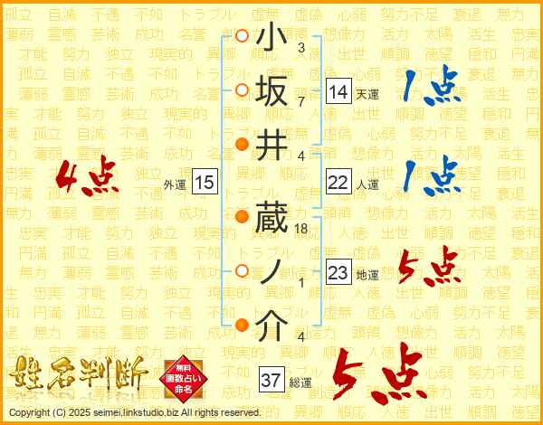 小(3画)坂(7画)井(4画) 蔵(18画)ノ(1画)介(4画)