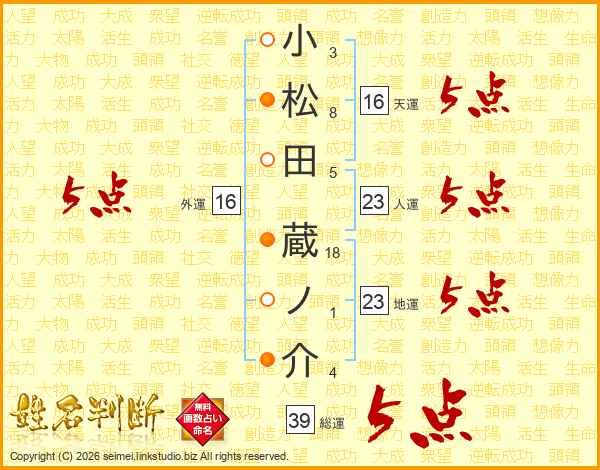 小松田蔵ノ介さんの総運は39画の5点!