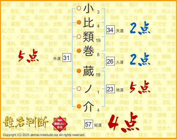 小比類巻蔵ノ介さんの総運は57画の4点!