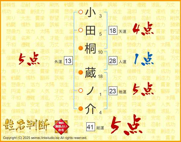 小(3画)田(5画)桐(10画) 蔵(18画)ノ(1画)介(4画)