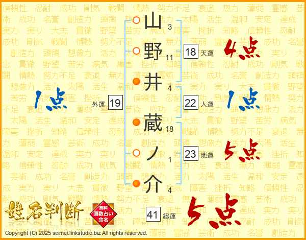 山野井蔵ノ介さんの総運は41画の5点!