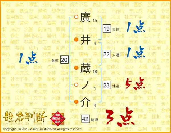 廣井蔵ノ介さんの地運は23画の5点!