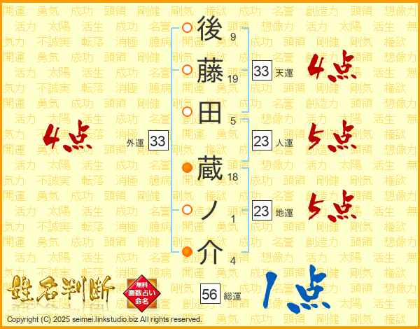 後(9画)藤(19画)田(5画) 蔵(18画)ノ(1画)介(4画)