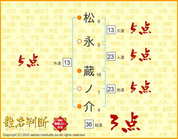 松(8画)永(5画) 蔵(18画)ノ(1画)介(4画)