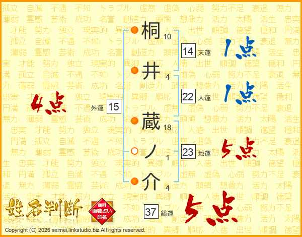 桐井蔵ノ介さんの総運は37画の5点!