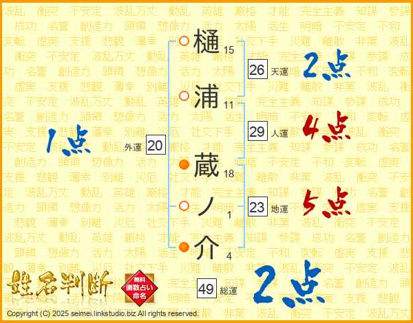 樋(15画)浦(11画) 蔵(18画)ノ(1画)介(4画)