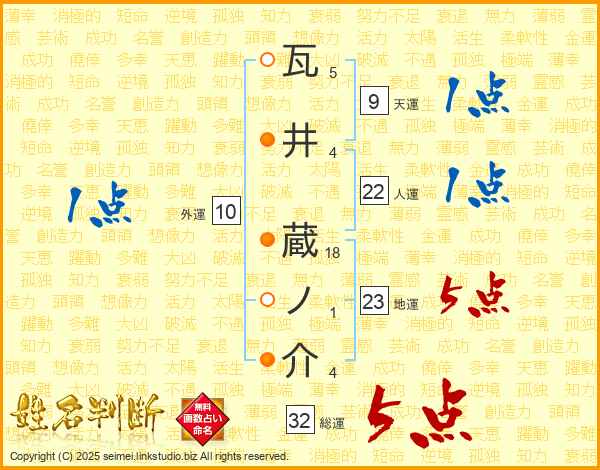 瓦井蔵ノ介さんの総運は32画の5点!