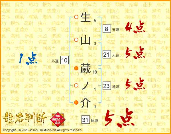 生山蔵ノ介さんの総運は31画の5点!