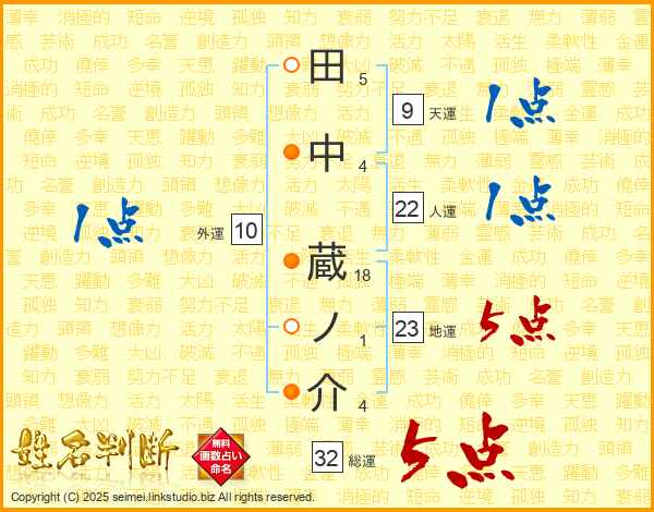 田中蔵ノ介さんの総運は32画の5点!