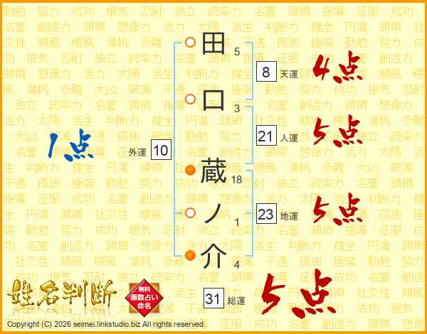 田(5画)口(3画) 蔵(18画)ノ(1画)介(4画)