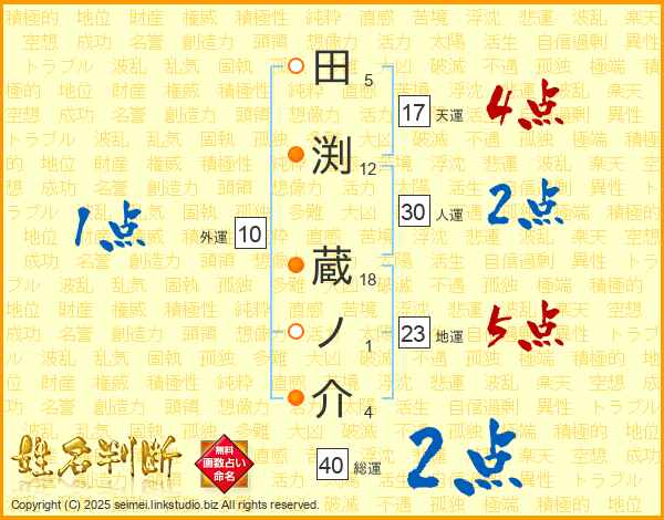 田(5画)渕(12画) 蔵(18画)ノ(1画)介(4画)
