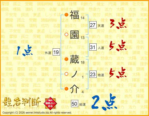 福(14画)園(13画) 蔵(18画)ノ(1画)介(4画)