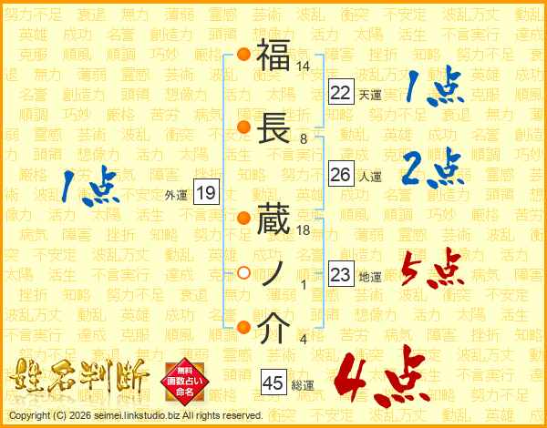 福(14画)長(8画) 蔵(18画)ノ(1画)介(4画)