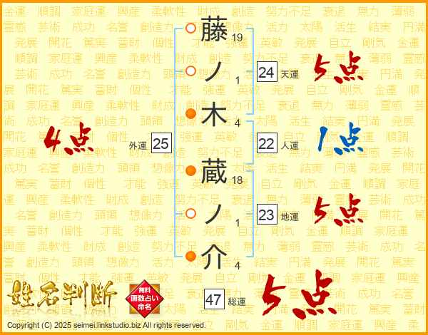 藤ノ木蔵ノ介さんの総運は47画の5点!