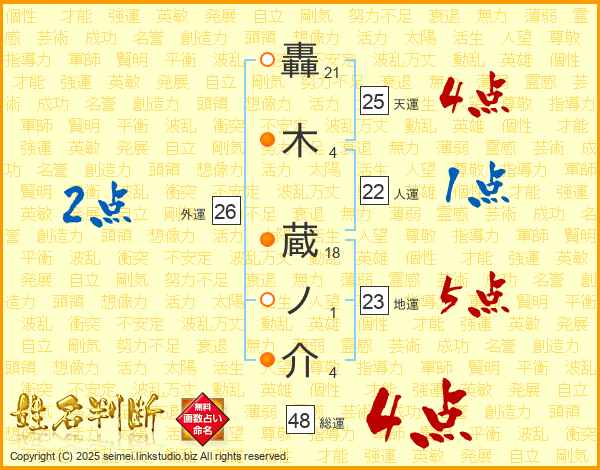 轟(21画)木(4画) 蔵(18画)ノ(1画)介(4画)