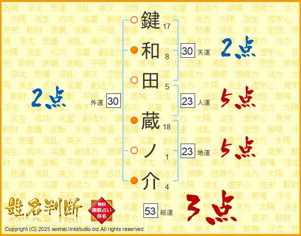 鍵和田蔵ノ介さんの総運は53画の3点!