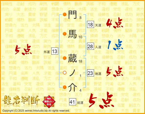 門(8画)馬(10画) 蔵(18画)ノ(1画)介(4画)