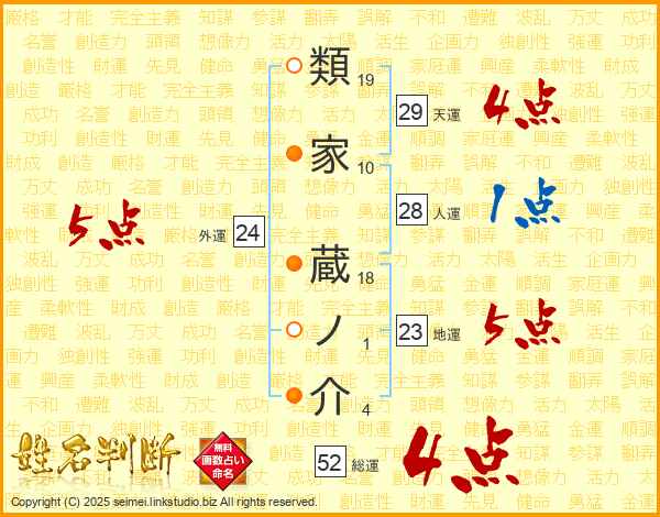 類(19画)家(10画) 蔵(18画)ノ(1画)介(4画)