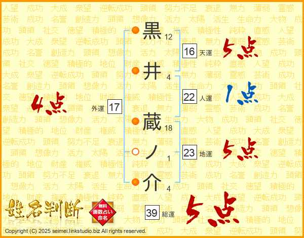黒(12画)井(4画) 蔵(18画)ノ(1画)介(4画)