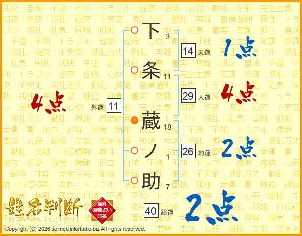 下条蔵ノ助さんの総運は40画の2点!